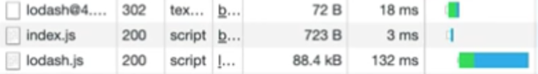크롬 개발자 모드의 '네트워크'를 통해 어떤 변화가 있는지 확인 가능합니다. 가장 큰 변화는 '네트워크 요청 횟수' 입니다. 웹팩은 여러 자원을 하나의 파일로 합칩니다. 즉, 여러 자원을 묶은 파일만 요청하기 때문에 네트워크 요청 횟수를 줄일 수 있습니다.