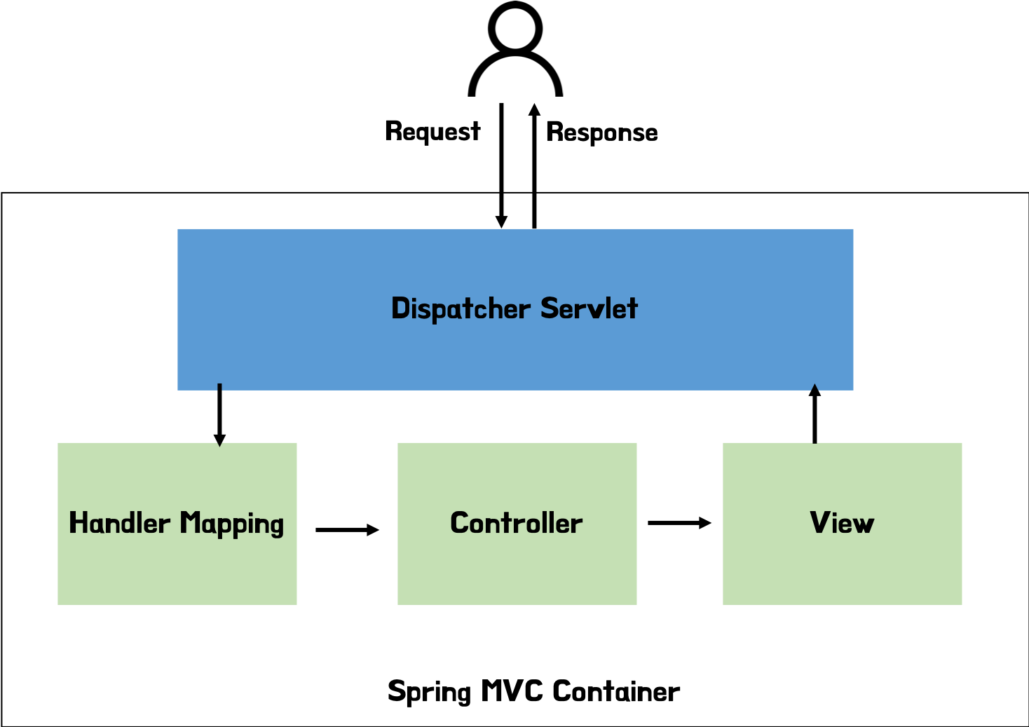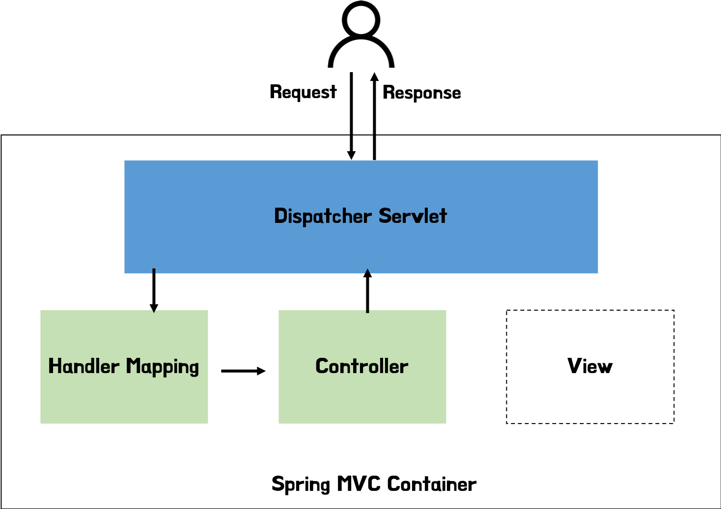 전통적인 스프링 MVC 컨트롤러 @Controller는 주로 View를 반환하기 위해 사용하며, 그림[1] 같은 과정을 거친다. @Controller는 주로 View를 반환하기 위해 사용하지만, @ResponseBody를 사용하여 객체를 반환 할 수도 있다.